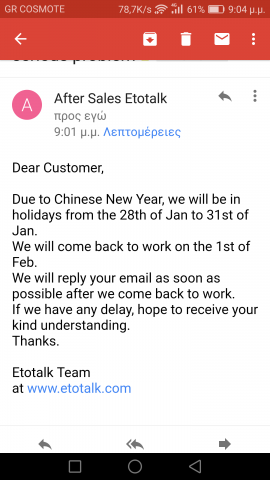και ενα αυτοματοποιημενο- απαντηση email. Απο 1 Φεβρουαριου δουλευουν. Για να δουμε, τι εξελιξη θα εχω!!!