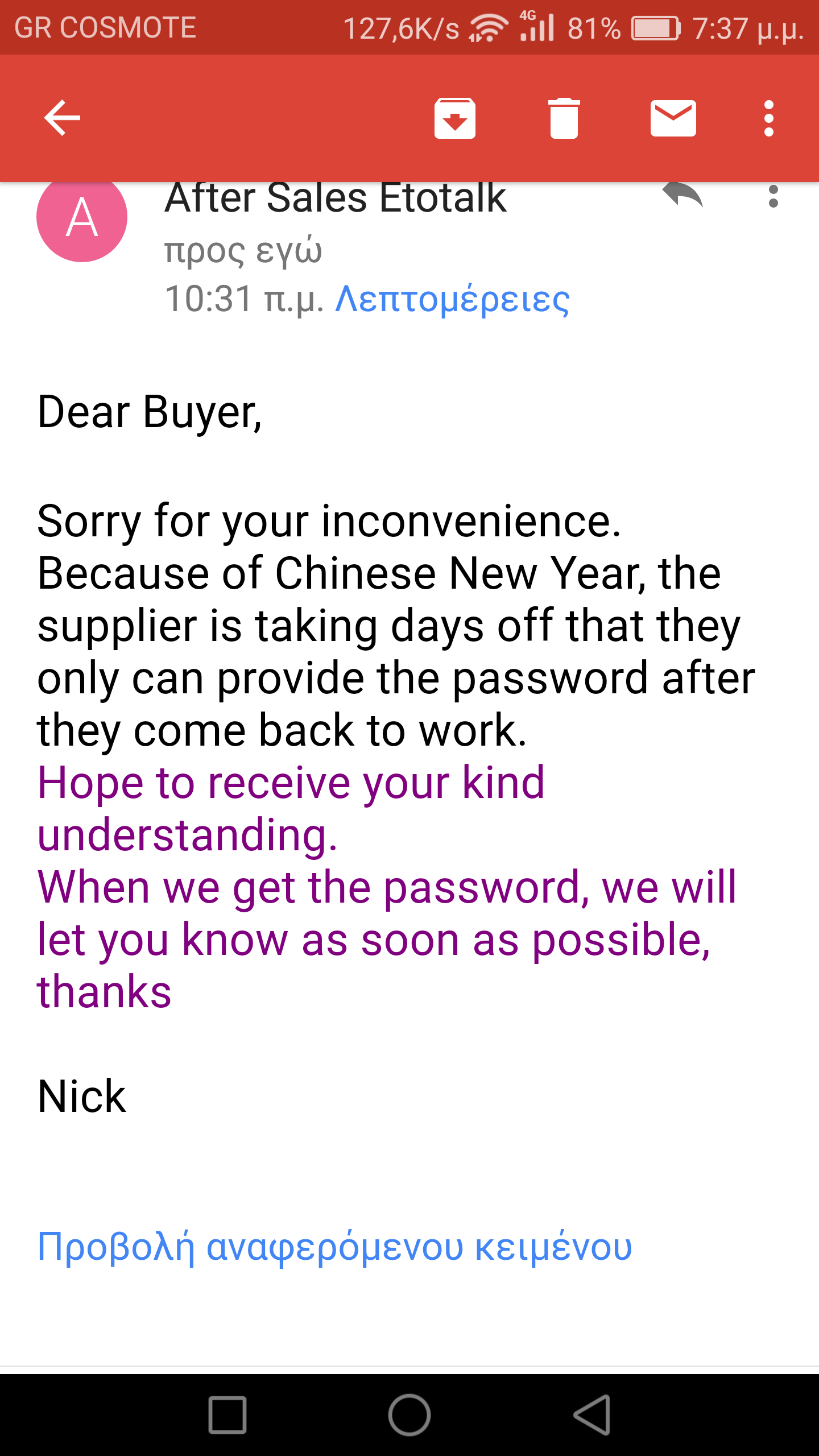 Μάλλον σου είπαν για 12/2 γιατί έχετε 20 μέρες να τα βρείτε με τον πωλητή στο πλαίσιο του DISPUTE.