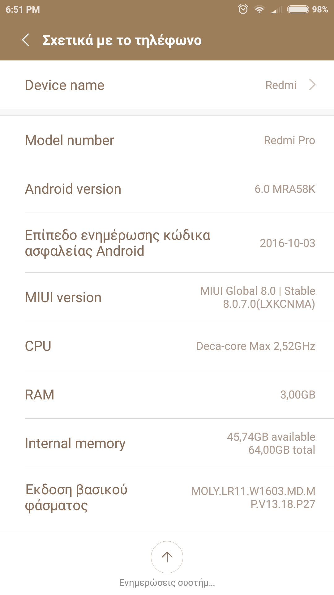 Πρόσφατα αγόρασα το Xiaomi redmi pro 64.