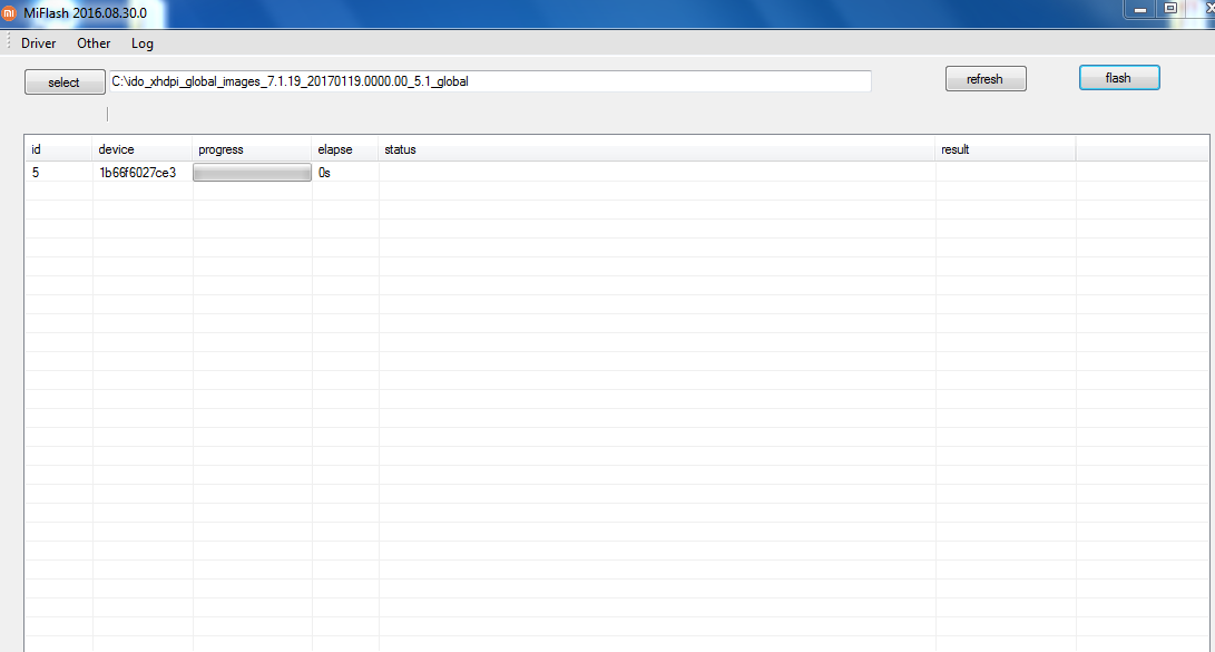 Και αφού έχω κατεβάσει την rom του ξεκίνησα με το flash με το XiaoMiFlash