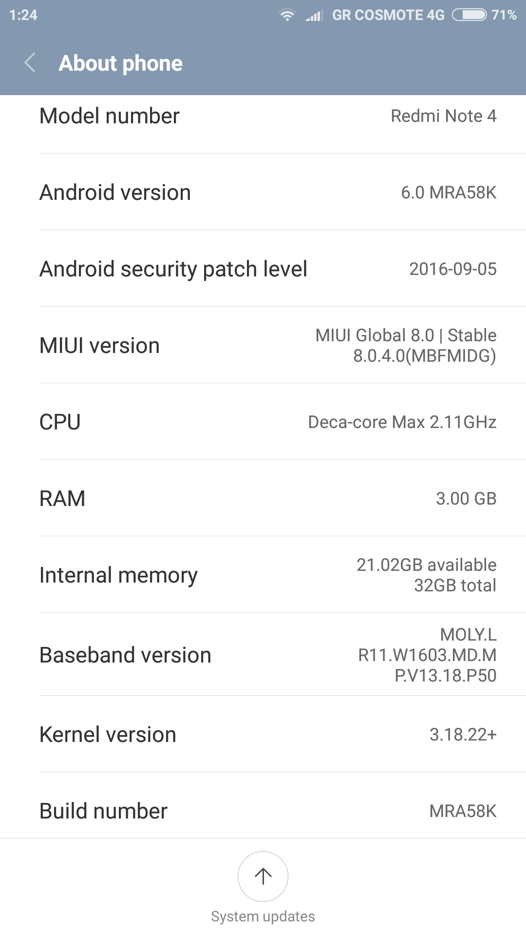 Σας επισυνάπτω και screenshot. Επίσης αφού έχει bootarei και το συνδέω στον Η/Υ το miui suite λέει ότι δεν έιναι η τελευταία έκδοση που έχω (μάλλον περιμένει να βρει την τελευταία κινέζικη υποθέτω και όχι Ευρωπαϊκή).