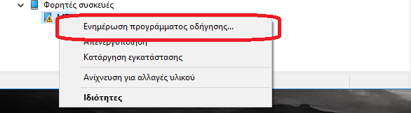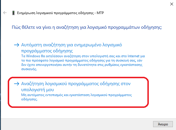 2. Επιλέγουμε "Αναζήτηση λογισμικού προγράμματος οδήγησης στον υπολογιστή μου"