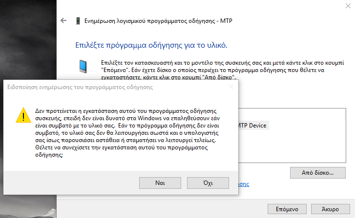 6. Και πατάμε "Επόμενο" για να γίνει εγκατάσταση των νέων drivers, στο παράθυρο που θα εμφανιστεί πατάμε "Ναι"