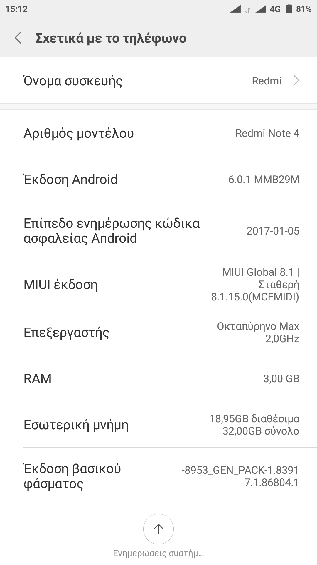 το MIUI έκδοδη είναι 8.1.15.0 (MCFMIDI)
