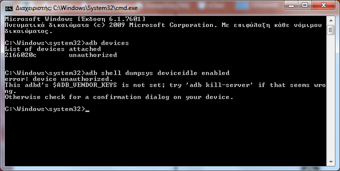 Δώσε authorization στη συσκευή σου, με το που κάνεις adb devices πρέπει να έχει πεταχτεί ένα παράθυρο στο κινητό για ασφαλή σύνδεση. Επέτρεψέ τη και μετααααααα θα δουλέψει