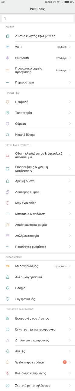 Αναφέρω μερικές: Φλας ειδοποίησης, Προσωπικό σημείο πρόσβασης, System apps updater, Mi Mover, κτλ