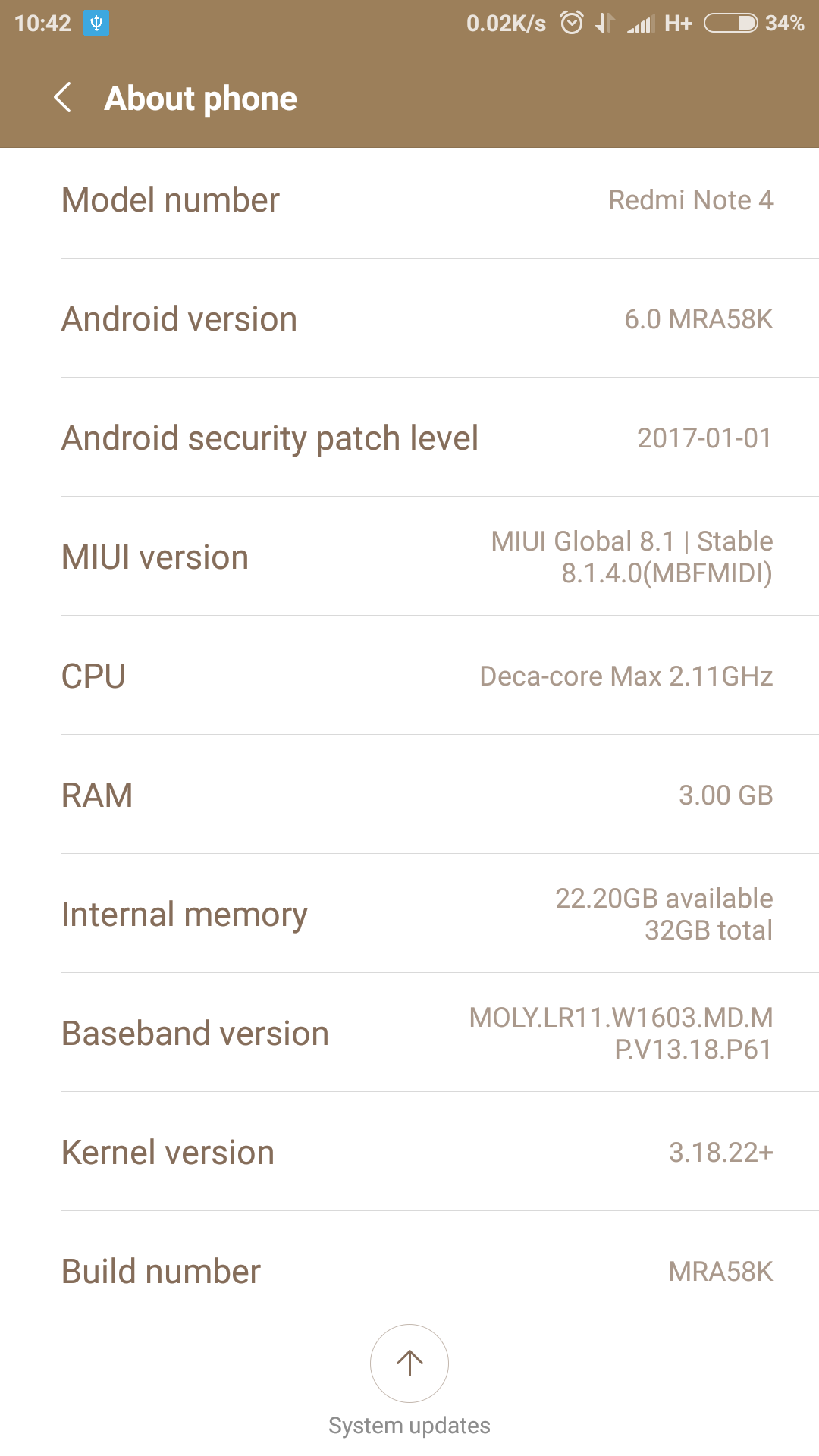 αυτό που πήρα λοιπόν έχει την ROM που βλέπετε, το έχω 1-2 ημέρες και έχω την αίσθηση ότι η μπαταρία κρατάει σχετικά λίγο - ούτε μια ημέρα για την ακρίβεια (σχετικά και με το Ulefone Βe Pro που είχα πριν που είχε και την μισή μπαταρία). είδα στο en.miui.com/a-234.html ότι υπάρχει και η έκδοση Redmi Note 4 MTK Latest Global Stable Version Fastboot File Download με όνομα αρχείο 8.1.6.0 (nikel_global_images_V8.1.6.0.MBFMIDI_20170224.0000.00_6.0_global_62dd0b9c3b.tgz)