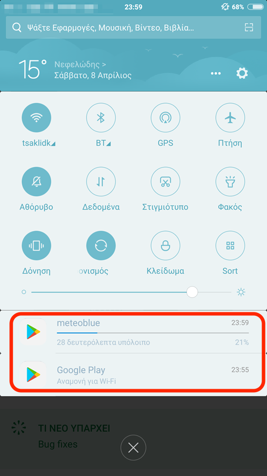 Βεβαια οπως εγραψα και πιο πανω, ενω η λειτουργια του download λειτουργει κανονικα, συνεχιζει να μου βγαζει και ενα εικονιδιο στη γραμμη ειδοποιησεων για Αναμονη για Wi-Fi .......