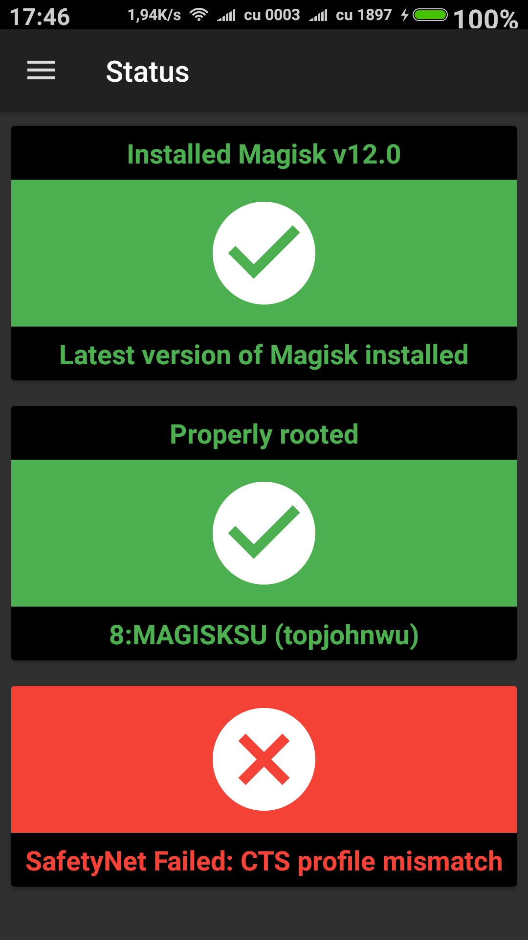 Μια χαρά είσαι, μην κάνετε SafetyNet check καθώς δεν είναι συμβατό με Miui..Ο/H soulg έγραψε: