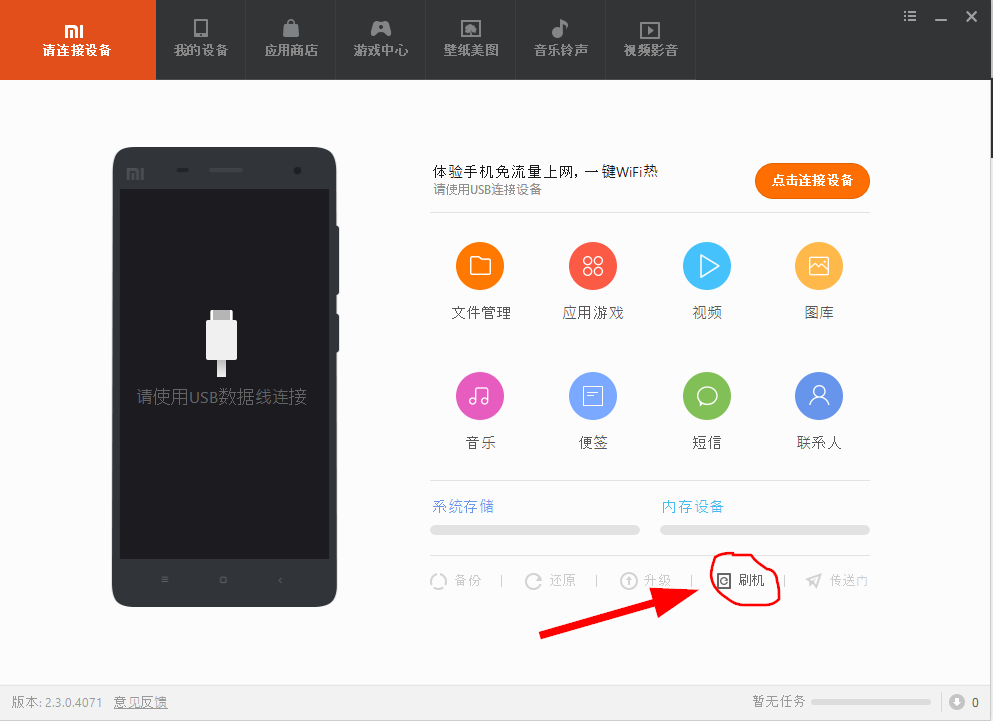 • συνδεσε το, γύρνα το σε recovery Και άνοιξε pc suite..