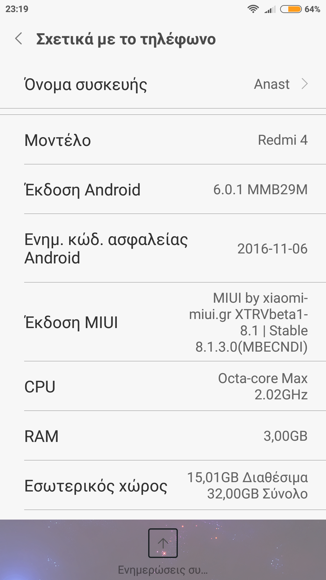 Καλησπέρα! Το πρόβλημα που αντιμετωπίζω αφορά καθαρά στην ΕΝΤΑΣΗ του μικροφώνου και παρατηρείται στις ηχογραφήσεις και στην καταγραφή video (όχι στις κλήσεις). Ο ήχος είναι πεντακάθαρος, δεν ακούγεται απομακρυσμένος ή κάτι τέτοιο, αλλά είναι εξαιρετικά χαμηλής έντασης. Δεν ξέρω αν πιθανόν είναι θέμα ROM. Ανεβάζω και ένα printscreen από το "Σχετικά με το τηλέφωνο".