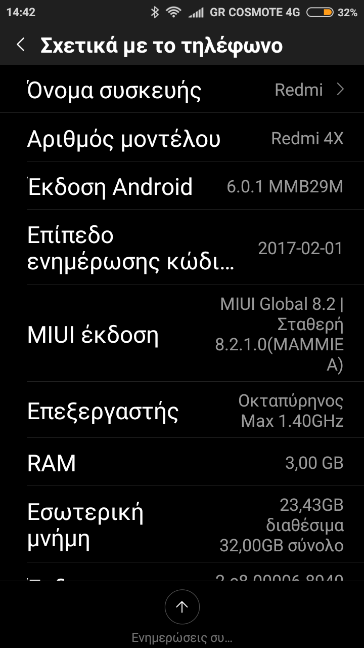 καλησπερα σε ολο το φορουμ σημερα πηρα κι εγω απο ελληνικο καταστημα την global version redmii 4x με ευρωπαικο φορτιστη!!ειχα το redmi 4 prime πριν και ειχα αδεια ξεκλειδωματος!θα χρειαστει να ξανακανω αιτηση!!παραθετω και στιγμιοτυπο που φαινεται φυσιολογικη η ρομ!!!παντως με global stable λεει στο 50% το γνωστο γνωμικο couldnt verify device!!an kai εκανα κανονικα ευρεση συσκευης και συγχρονισμο στο mi account!!
