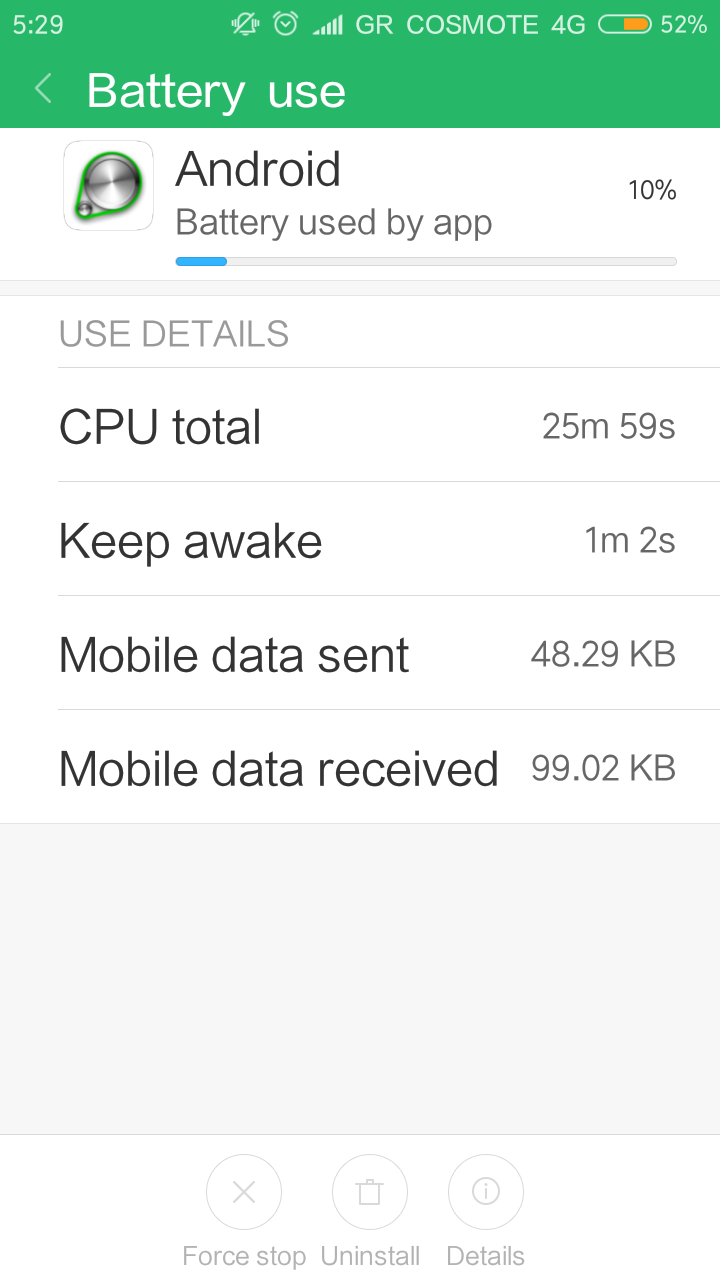 Σύμφωνα με τις φωτογραφίες, κάτι (ενδεχομένως εφαρμογή, ίσως και εφαρμογή συστήματος) σου κρατούσε ενεργό το κινητό (ενεργή οθόνη) για περίπου 4 ώρες, ενώ το SOT έλεγε μία ώρα και κάτι. Συνεπώς κάτι έτρεχε στο παρασκήνιο που ροκανιζε μπαταρία.Ο/H leontatos έγραψε: