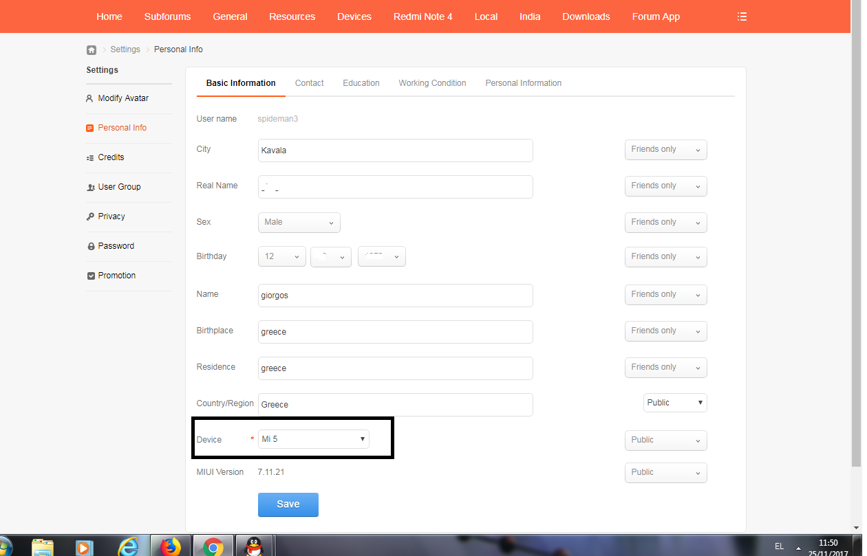 Αφού κάνεις τα παραπάνω θα πας στο en.miui.com - προφίλ σου - settings και θα συμπληρώσεις τα στοιχεία σου και την συσκευή σου.