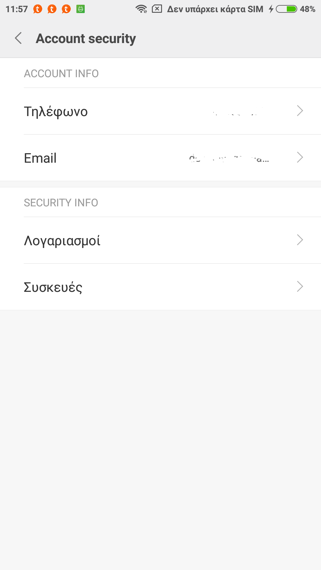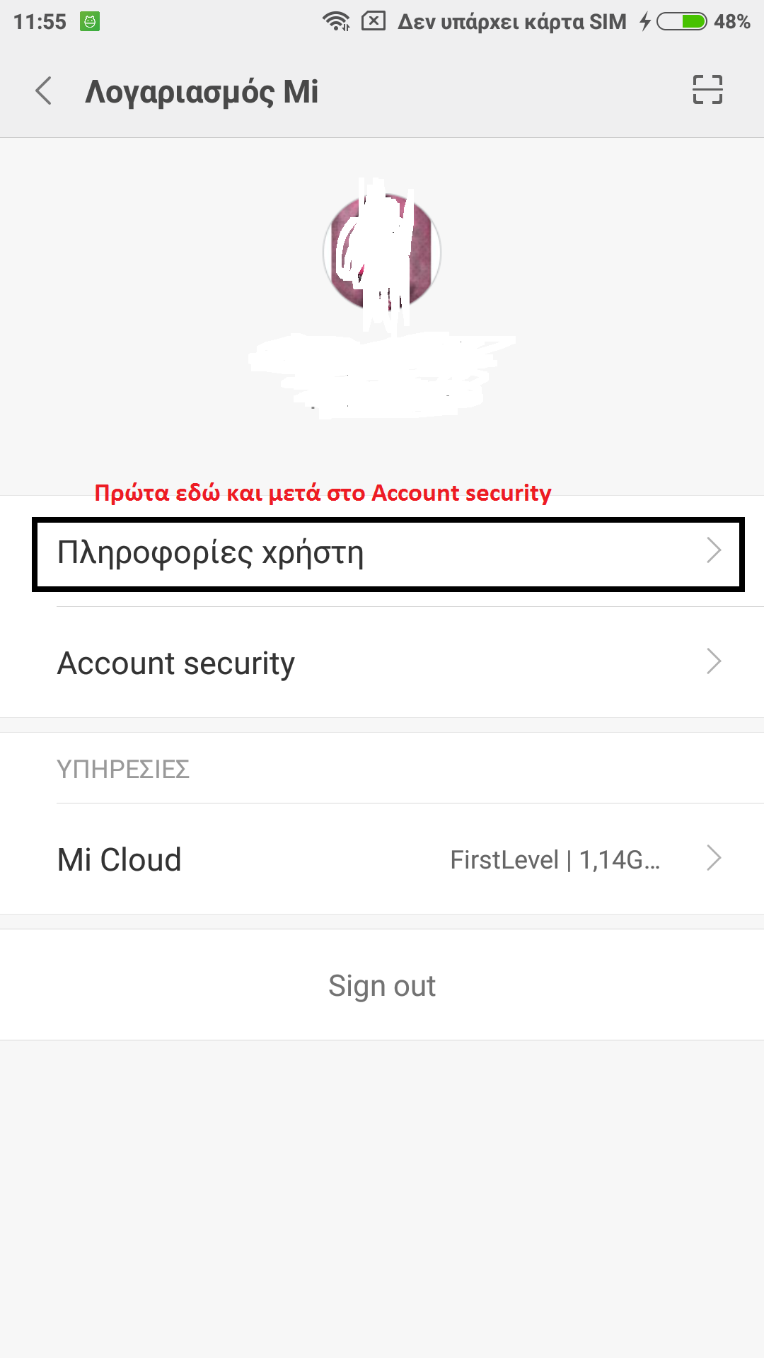 Το ίδιο θα κάνεις και στην συσκευή σου Ρυθμίσεις - Mi Λογαριασμός - Πληροφορίες χρήστη και βλέπεις αν είναι ίδια με τον λογαριασμό με το en.miui.com - το ίδιο και το Account security