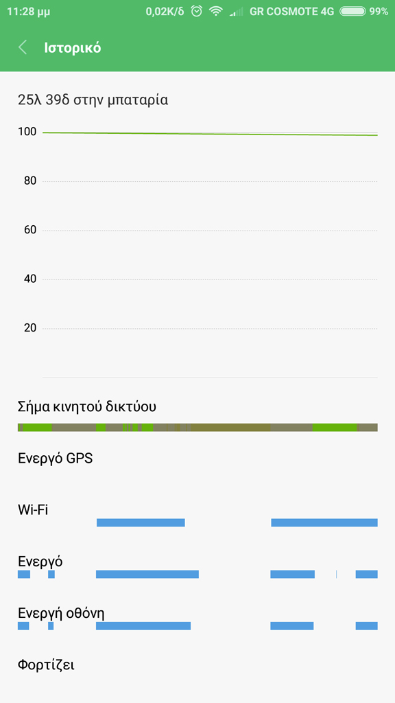 Καλα ναι ...... επειδή πάνω κάτω την ιδια χρήση κάνω κάθε μέρα . Δες π.χ μετα απο 25 λεπτά επεσε -1% με χρήση , χωρις να το χρησιμοποιώ πέφτει μετα απο καμια ώρα