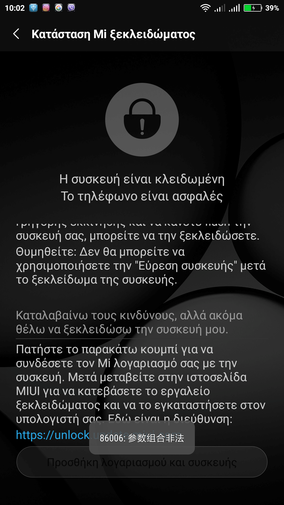 τέλεια. Δοκίμασε να κατεβάσεις από τη σελίδα τους το mi unlock. Μόλις καταφέρεις να το κατεβάσεις τρεξτο και ακολούθως προσπάθησε να ξεκλειδώσεις.