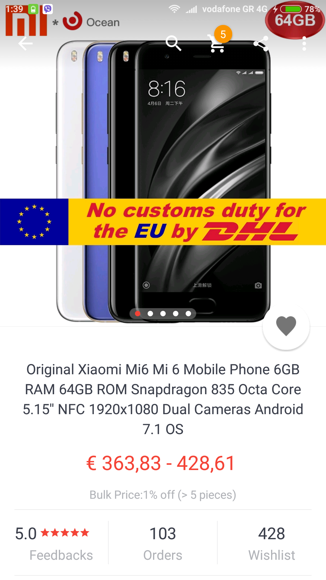 Αν κανεις παραγγελια απο την εφαρμογη aliexpress ειναι πιο φτηνα. Το 6/128 εχει 425.95 -