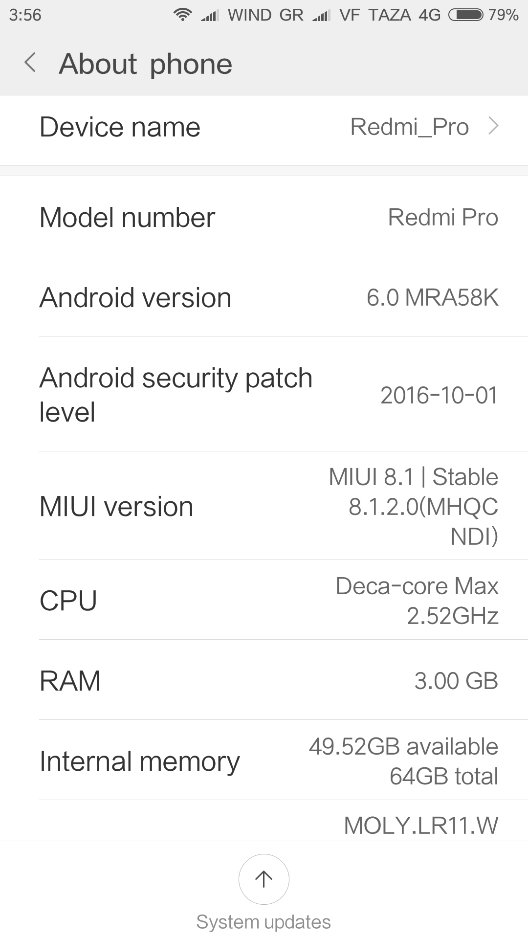Xiaomi redmi pro V8.0.7.0 (LXKCNMA)