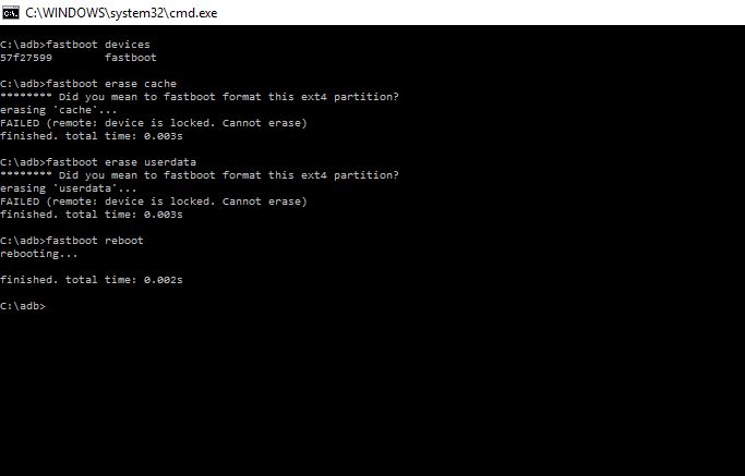Έχεις κλειδωμένο bootloader τελικά, για αυτό δεν ολοκληρώνονται οι εντολές.