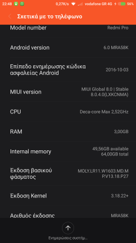 Η ROM σου φίλε μου είναι unofficial πειραγμένη από το κατάστημα που πήρες το κινητό. Δεν υπάρχει Global Stable για redmi pro. Κάνε έλεγχο στον Bootloader αρχικά να δεις αν είναι κλειδωμένος ή όχι.