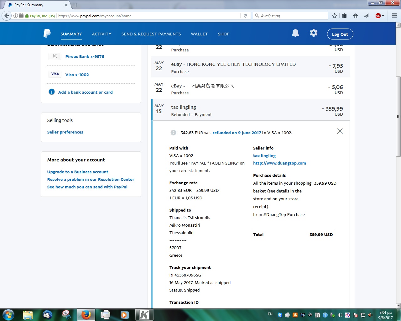 Jun 9, 2017 - PayPal: Email sent to buyer