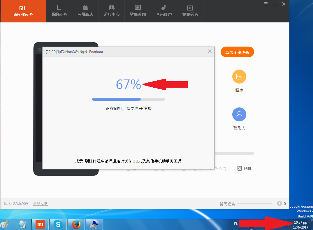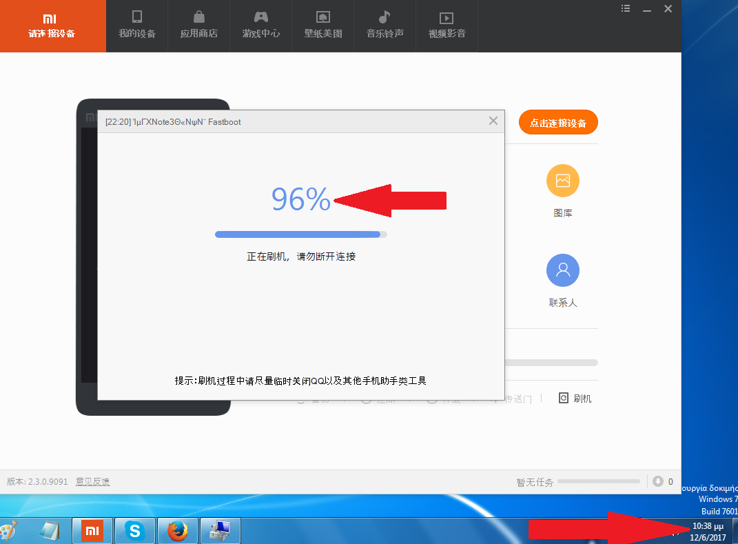 Συνδέστε την συσκευή σας στο PC ανοίξτε το Mi Pc Suite Chinese αν έχετε ακολουθήσει σωστά τα βήματα θα πρέπει να σας αναγνωρίσει αμέσως