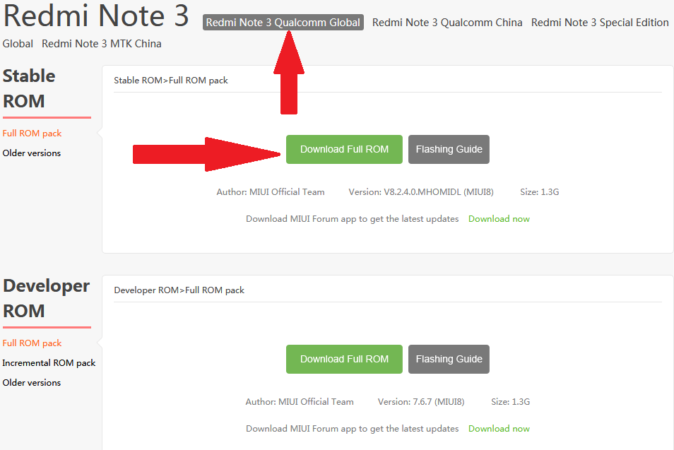 Θα μας δείξει αμέσως πια συσκευή έχουμε ώστε να κατεβάσουμε την σωστή rom (Στο παράδειγμα εδώ μας λέει Xiaomi Redmi Note 3 Pro) και συγκεκριμένα το kenzo.
