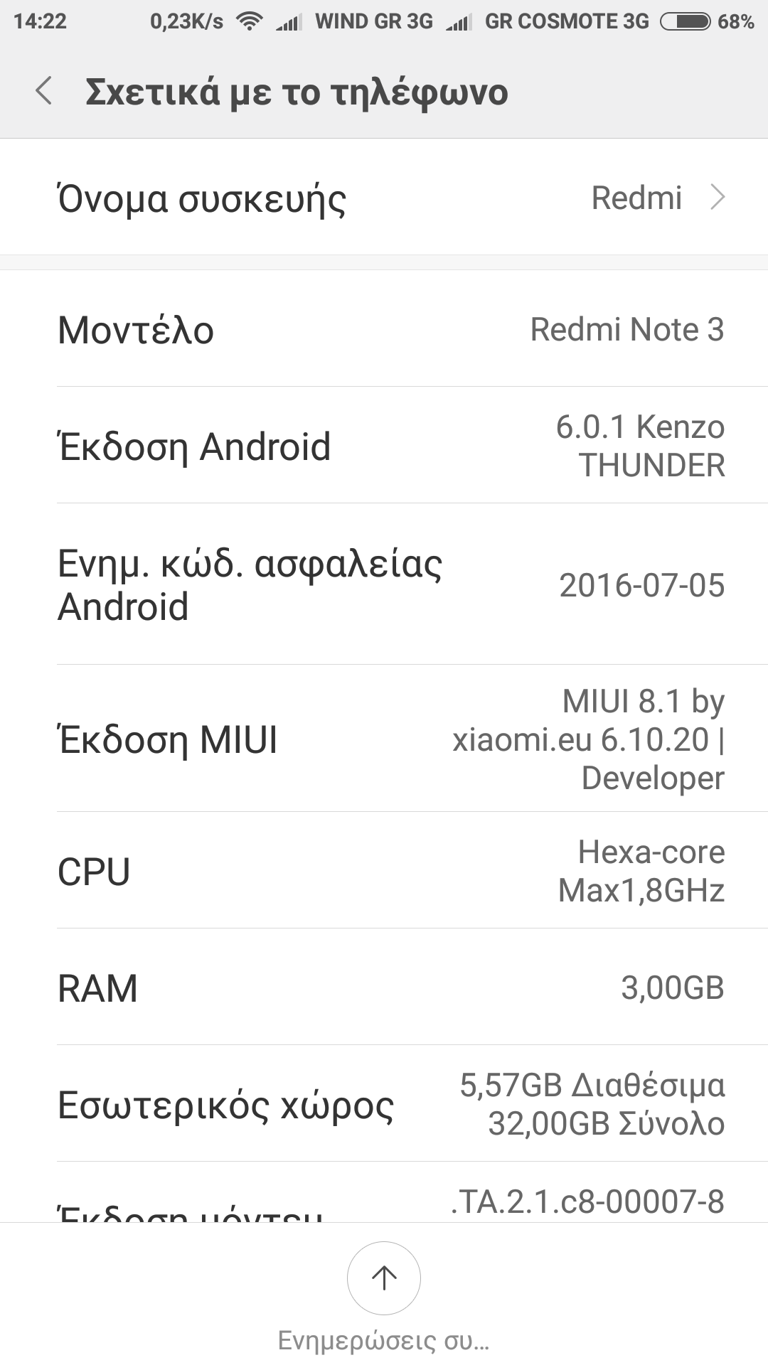 Θα μπορούσες να ανεβάσεις μια φώτο με αυτά που δείχνει στο σχετικά με το τηλέφωνο να δούμε ποια ρομ έχεις ?