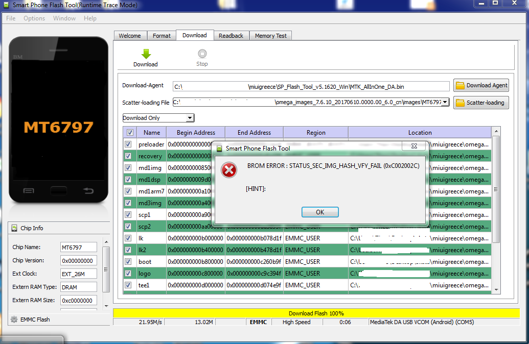 Προσπαθώντας να ξεκλειδώσω τον bootloader με miflash_unlock_2.2.624.14 κολλάει στο 99%: