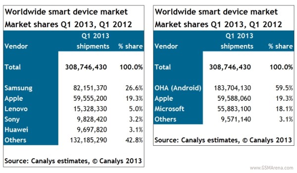 Οι πωλήσεις των Smart κινητών συσκευών για το 1ο τρίμηνο του τρέχοντος έτους έχουν φτάσει στο ρεκόρ των 308,7 εκατ. συσκευών, σύμφωνα με την τελευταία έκθεση της Canalys.
