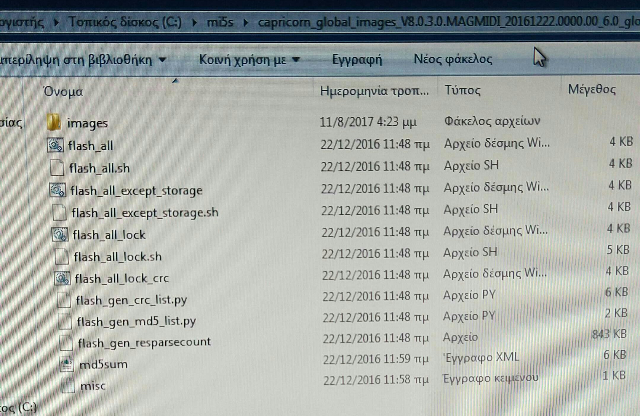 Στο miflash θα επιλέξεις τον δεύτερο φάκελο που έχει το όνομα της ρομ (capricom....) και θα δουλέψει