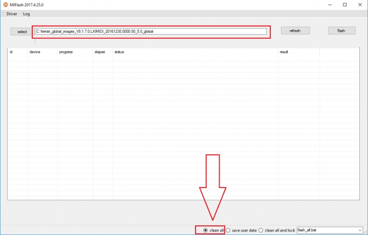 Είναι απαραίτητο να επιλέξετε αμέσως μετά την clean all επιλογή στο Mi Flash για να αποφύγετε διάφορα προβλήματα στην εγκατάσταση της MIUI 9.