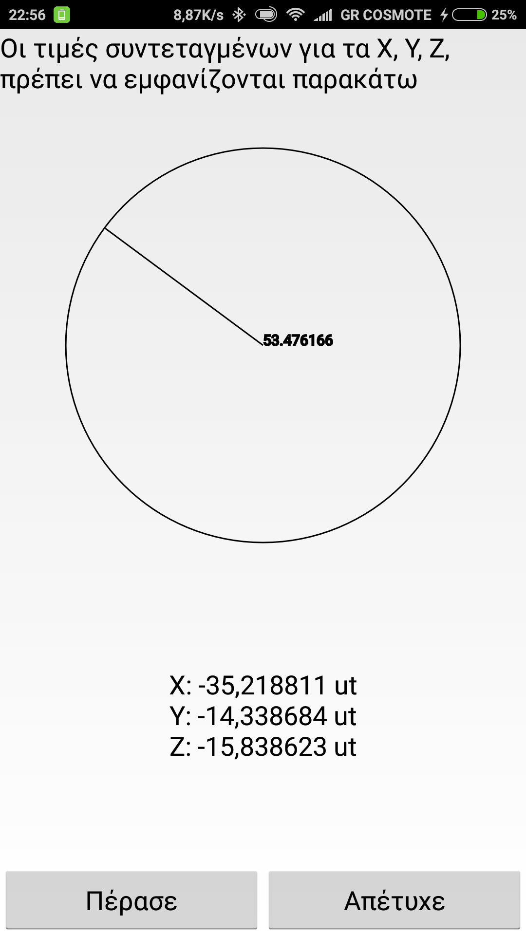 Ανοίγω την πυξίδα και μου ζητάει βαθμονόμηση κουνώντας την συσκευή σε σχήμα 8.εχω ανοιχτό και το GPS και το WiFi. Κουνάω κουνάω αλλά τίποτα. Εξάρθρωση έπαθα αλλά τίποτα.. Χαχαχα