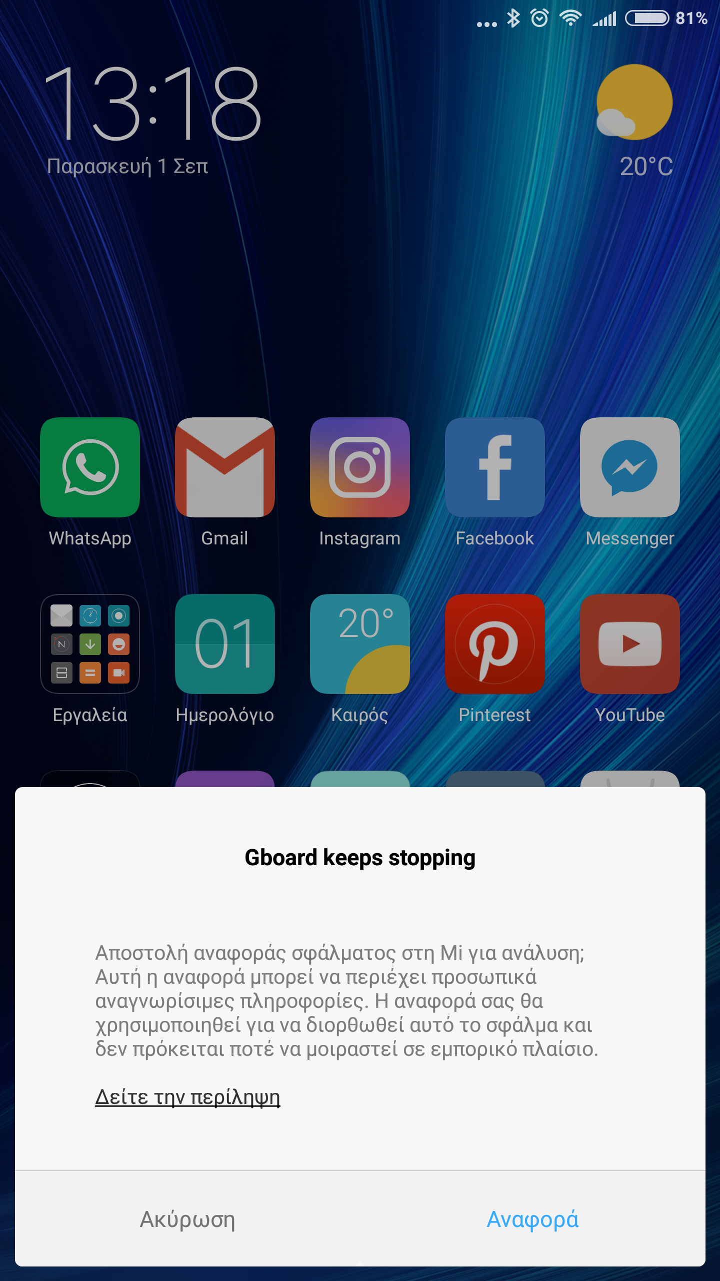 Πριν απο λίγο το κινητό, άρχισε να βγάζει το παρακάτω σφάλμα. Από μόνο του, χωρίς να έχω κάνει κάτι, και ενώ το ακυρώνω, ξαναβγαίνει. Το έκανα επανεκκίνηση και μέχρι στιγμής δεν το κάνει.