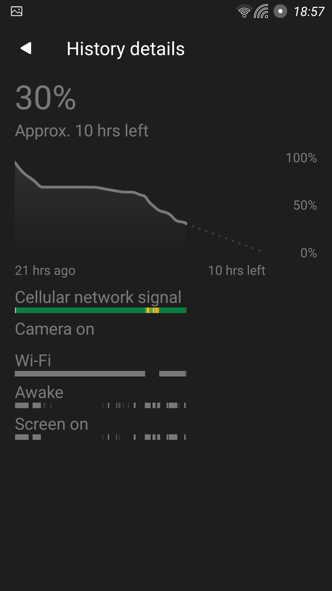 21 ώρες χρήση, έχει ακόμη 30% μπαταρία, 6 ώρες και 20 λεπτά sot μέχρι τώρα.