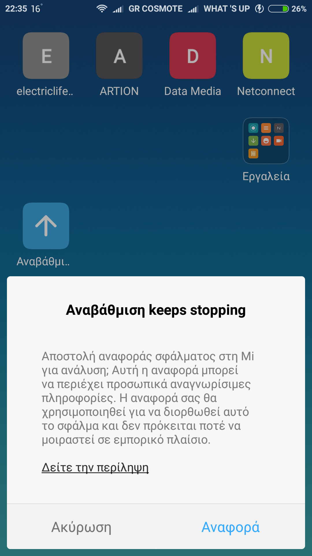 τώρα όμως δεν ανοίγει η αναβάθμιση -