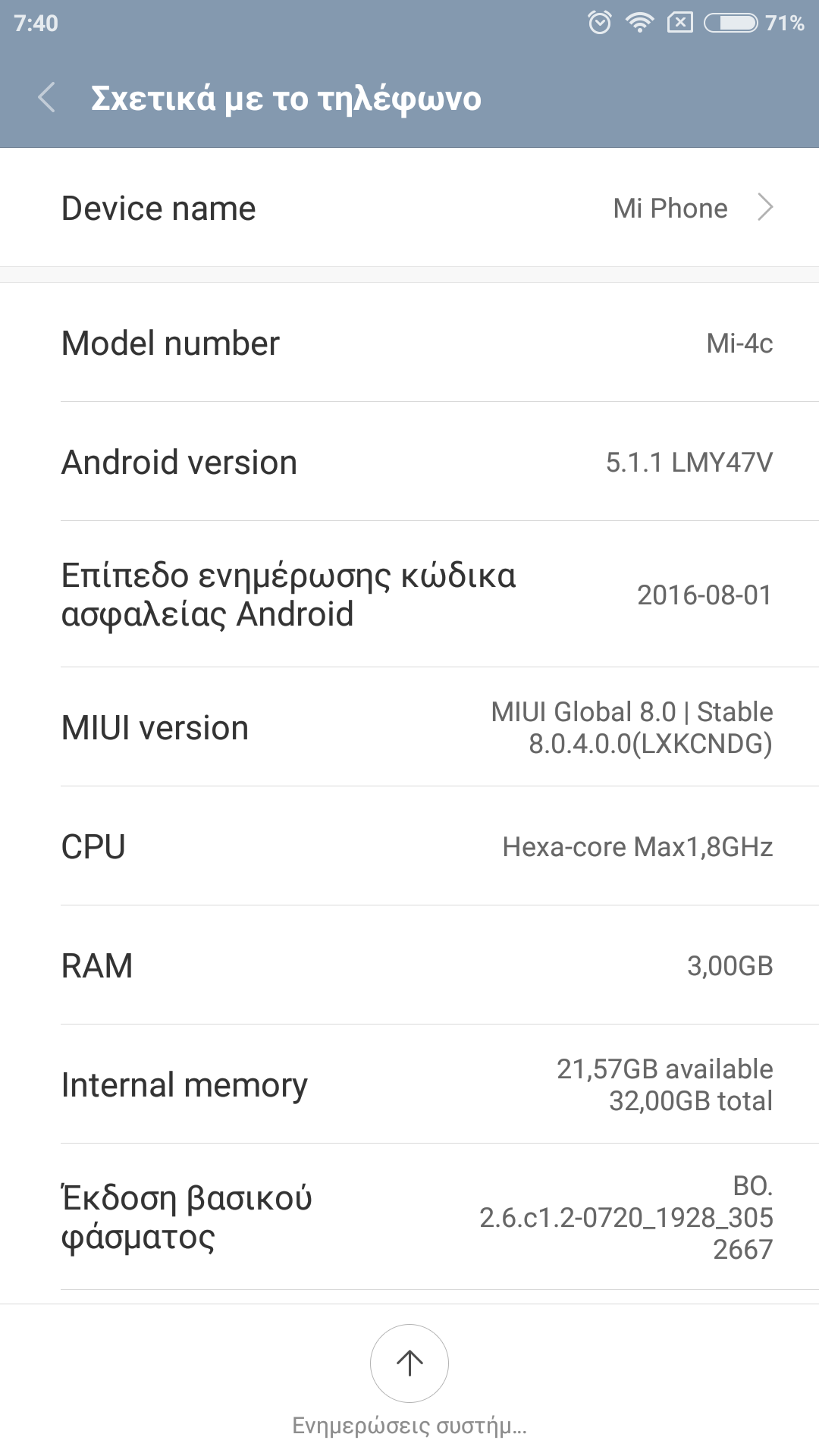 ΓΕΙΑ ΣΑΣ ΠΑΙΔΙΑ. ΑΓΟΡΑΣΑ ΑΠΟ ΚΙΝΑ ΤΟ MI4C 32GB. ΤΟ ΕΧΩ ΔΥΟ ΜΕΡΕΣ ΚΑΙ ΕΧΩ ΠΡΟΒΛΗΜΑ ΜΕ ΤΗΝ ΜΠΑΤΑΡΙΑ ΤΟΥ. Η ΔΙΑΡΚΕΙΑ ΤΗΣ ΕΙΝΑΙ ΜΙΣΗ ΜΕΡΑ ΚΑΙ ΟΤΑΝ ΦΤΑΝΕΙ ΠΕΡΙΠΟΥ ΣΤΟ 20% ΚΛΕΙΝΕΙ. ΤΟ ΒΑΖΩ ΝΑ ΦΟΡΤΙΣΕΙ ΚΑΙ ΔΕΙΧΝΕΙ 0%, ΜΕΤΑ ΑΠΟ 10 ΛΕΠΤΑ ΣΤΟ 60%. ΛΥΝΕΤΑΙ ΤΟ ΠΡΟΒΛΗΜΑ ΜΟΥ? ΕΥΧΑΡΙΣΤΩ ΚΑΙ ΠΕΡΙΜΕΝΩ ΤΗΝ ΒΟΗΘΕΙΑ ΣΑΣ. Η ROM TOY ΕΙΝΑΙ Η MIUI 8.0.4.0.0 STABLE.