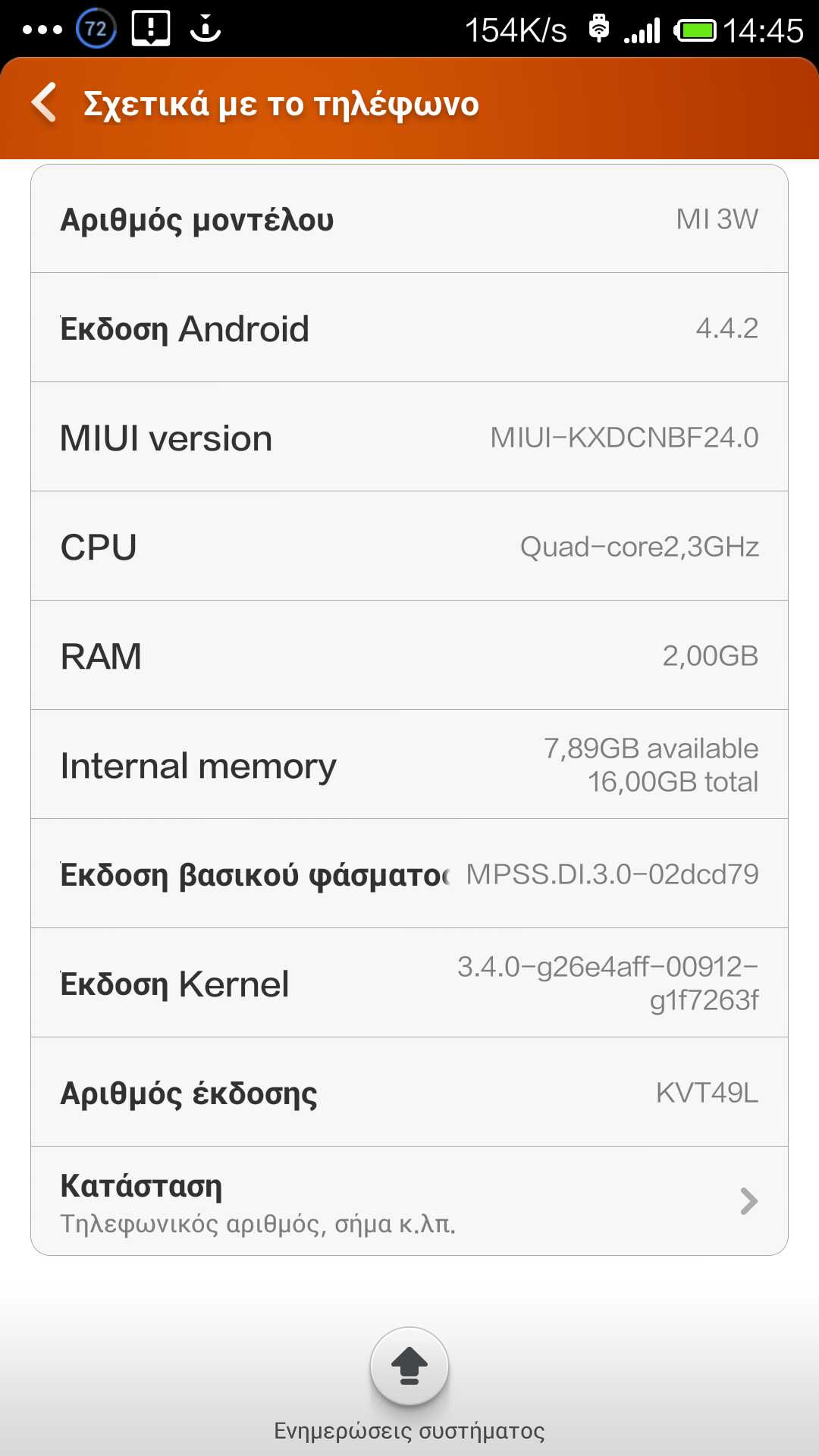 Είμαι κάτοχος ενός Mi 3w κινητού αγορασμένο από κινεζομάγαζο τον Οκτώβριο του 2014 με χαρακτηριστικά όπως αυτά φαίνονται στη συνημμένη φωτογραφία.