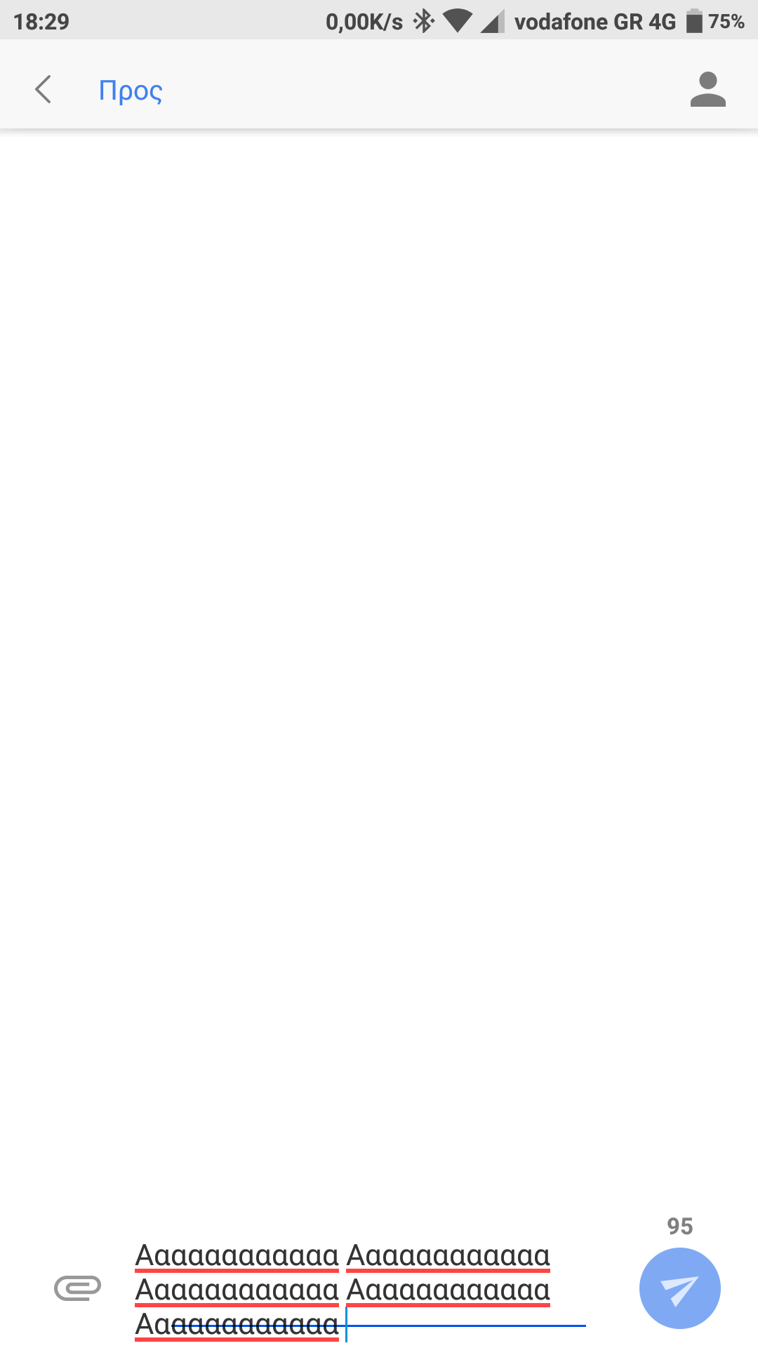 Καλησπέρα. Παιδιά δε ξέρω αν είναι bug ή όχι αλλά στα μηνύματα, όταν συμπληρωθούν οι 2 πρώτες γραμμές (την ώρα της σύνταξης του μηνύματος) τα γράμματα καλύπτονται από τη γραμμή.