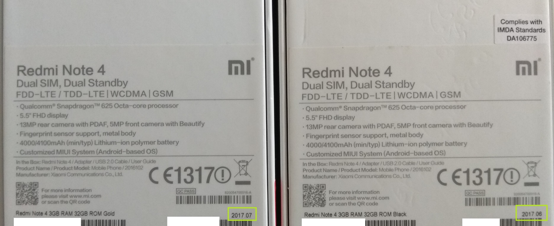 όπως φαίνεται και στις παρακάτω εικόνες,το Gold ήταν παραγωγής 2017.07 ενώ το Black ήταν 2017.07.