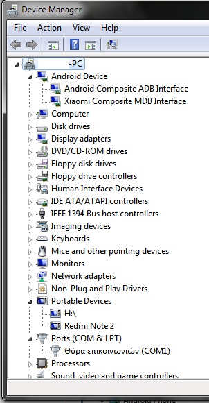 Το κινητό αναγνωρίζεται σαν Android Composite ADB interface και Xiaomi Composite MDB interface, Android Bootloader interface στη διαχείριση συσκευών και κλειστή συσκευή την αναγνωρίζει στα PORTS σαν MediaTek PreLoader USB VCOM (COMx) (στιγμιαία, μετά χάνεται).