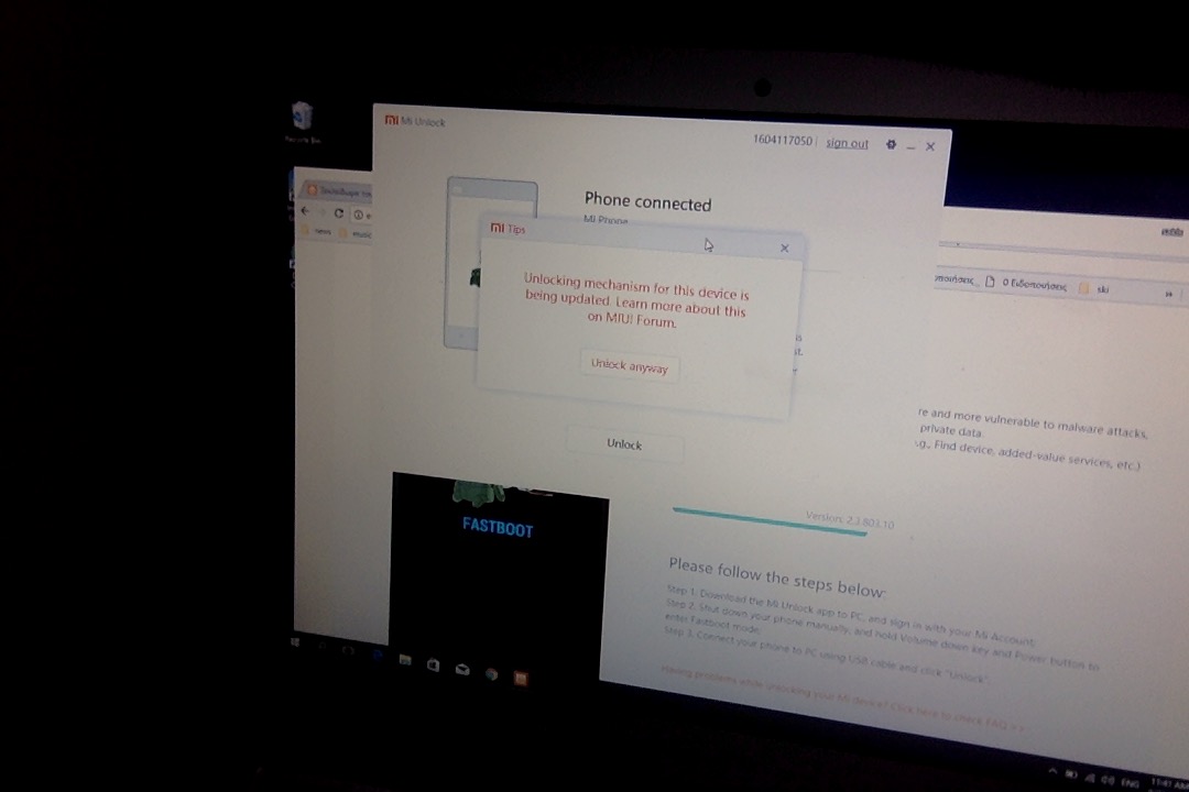Αν σε όλα η απάντηση είναι θετική, όταν συνδέεις το κινητό σε fastboot στον υπολογιστή και πατάς unlock τι σου δείχνει;