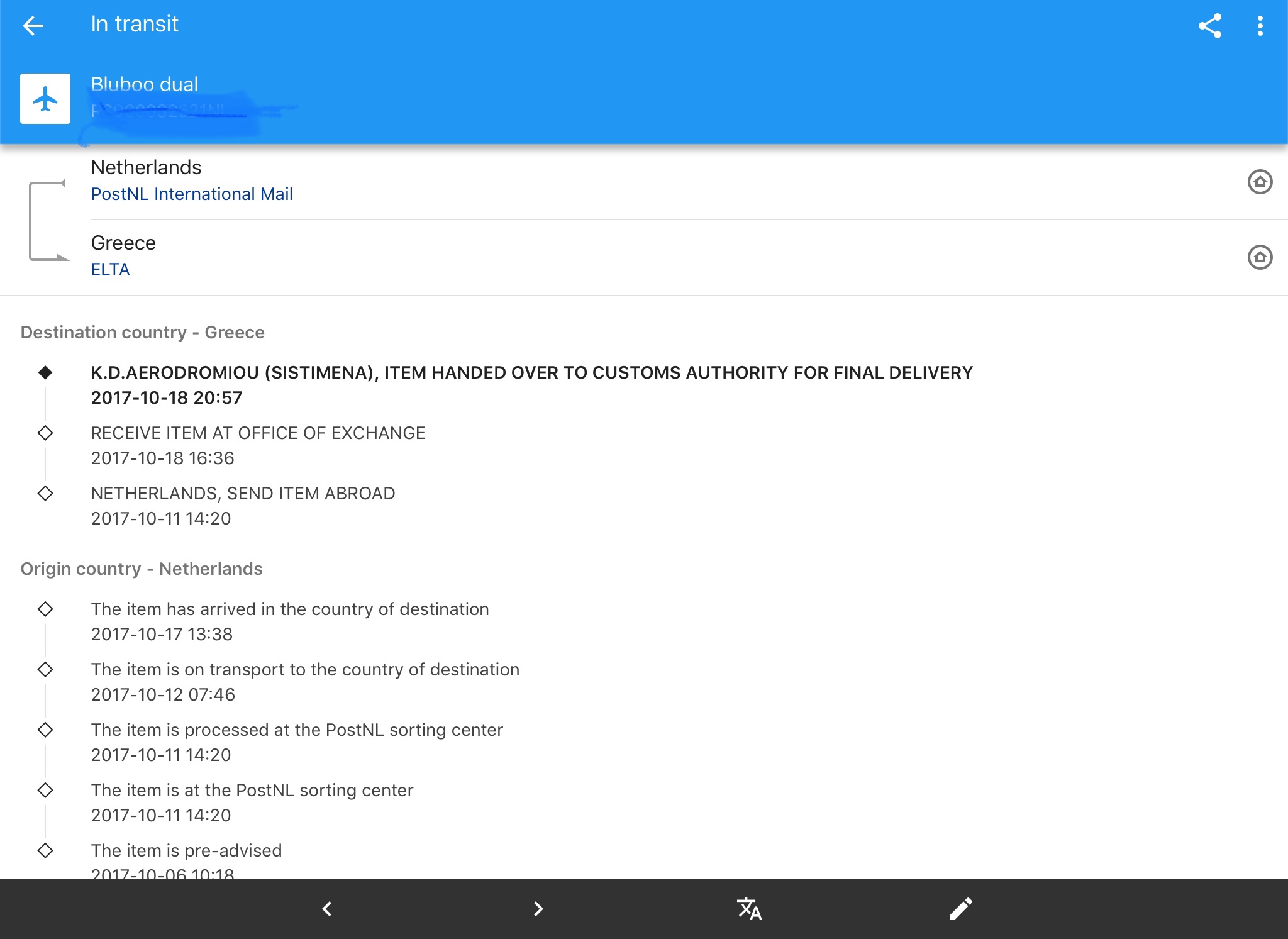 | 11/10/2017, 14:20:00 | ΟΛΛΑΝΔΙΑ | ΑΠΟΣΤΟΛΗ ΑΝΤΙΚΕΙΜΕΝΟΥ |