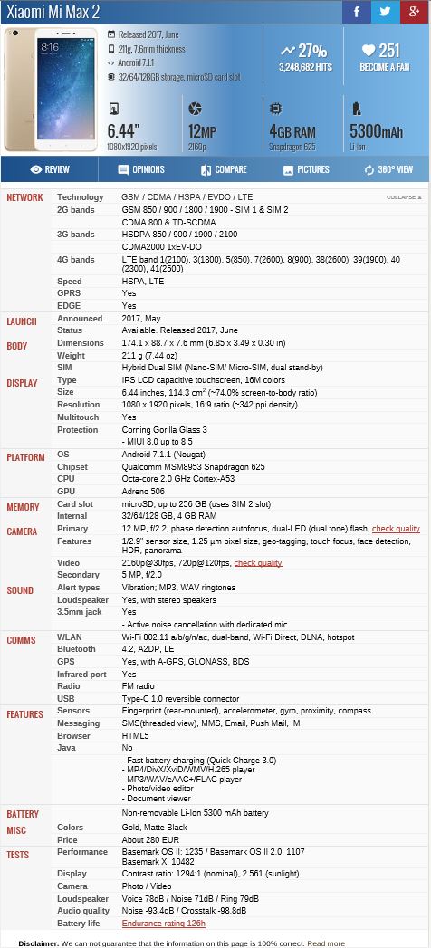 Καρφιτσωμένο Τεχνικά Χαρακτηριστικά Mi MAX 2 (Oxygen)