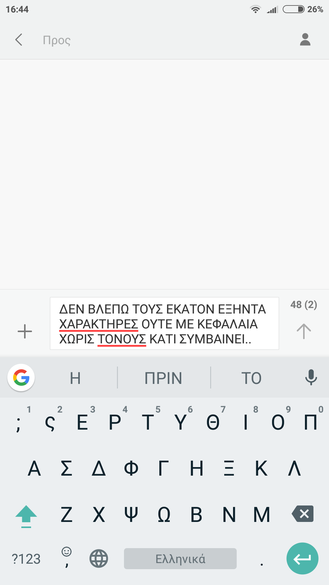Με τους 160 χαρακτήρες παρατήρησα ότι λειτουργεί κανονικά απλά για να φανεί ο αριθμός των υπολοίπων γραμμάτων πρέπει να πατήσεις 2 φορές εντερ για να κατέβει 2 γραμμές κάτω. Μικρό το κακό.