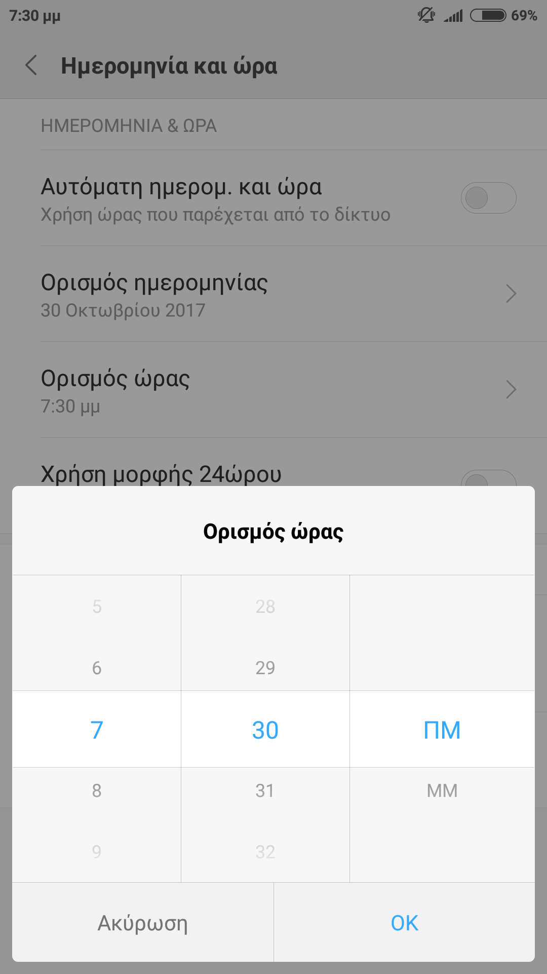- Εδώ και λίγες μέρες ανακάλυψα ένα σοβαρό πρόβλημα στο redmi note 4, το ρολόι συγκεκριμένα πάει λάθος δηλαδή, εάν για παράδειγμα είναι 10 το πρωί, το κινητό δείχνει ότι είναι 10 το βράδυ, αντί να λέει Δηλαδή 10:00πμ λέει 10:00μμ συνέχεια όλο το 24ωρο μου βγάζει μμ έχω πάει στις ρυθμίσεις έχω βγάλει το επιλογή αυτόματη ημερομηνία και ώρα, για να αλλάξω το μμ σε πμ αλλά Τίποτα, παραμένει μμ έκανα επανεκκίνηση το κινητό πάλι τα ίδια, έχω ανεβάσει screenshot, κάποιος που να ξέρει πως να το διορθώσω? Η κάποιος με το ίδιο πρόβλημα.
