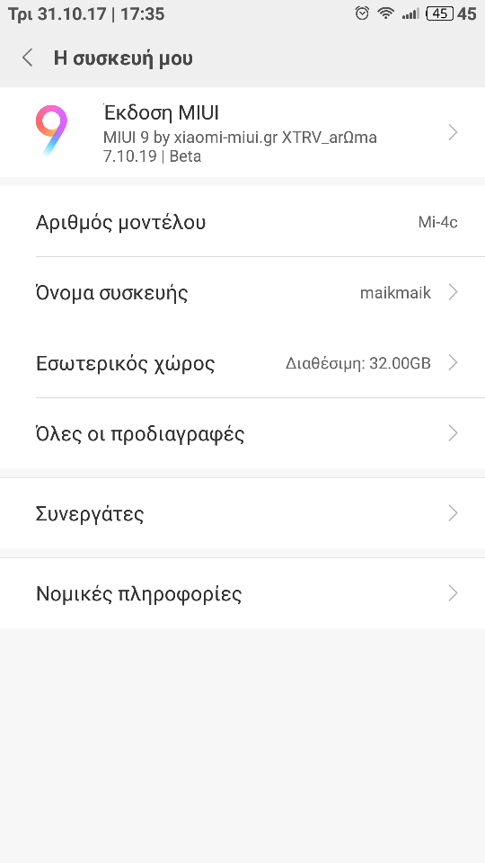 Ήμουν στην 7.10.26 και ξαναγύρισα στην 7.10.19 λόγω αυξημένης κατανάλωσης μπαταρίας. Δεν πρόσεξα τι έγραφε η rom. Ας μας πει κάποιος άλλος με mi4c που την φοράει. Πάντως να ξέρεις ότι κι αν γράφει είναι miui 9.