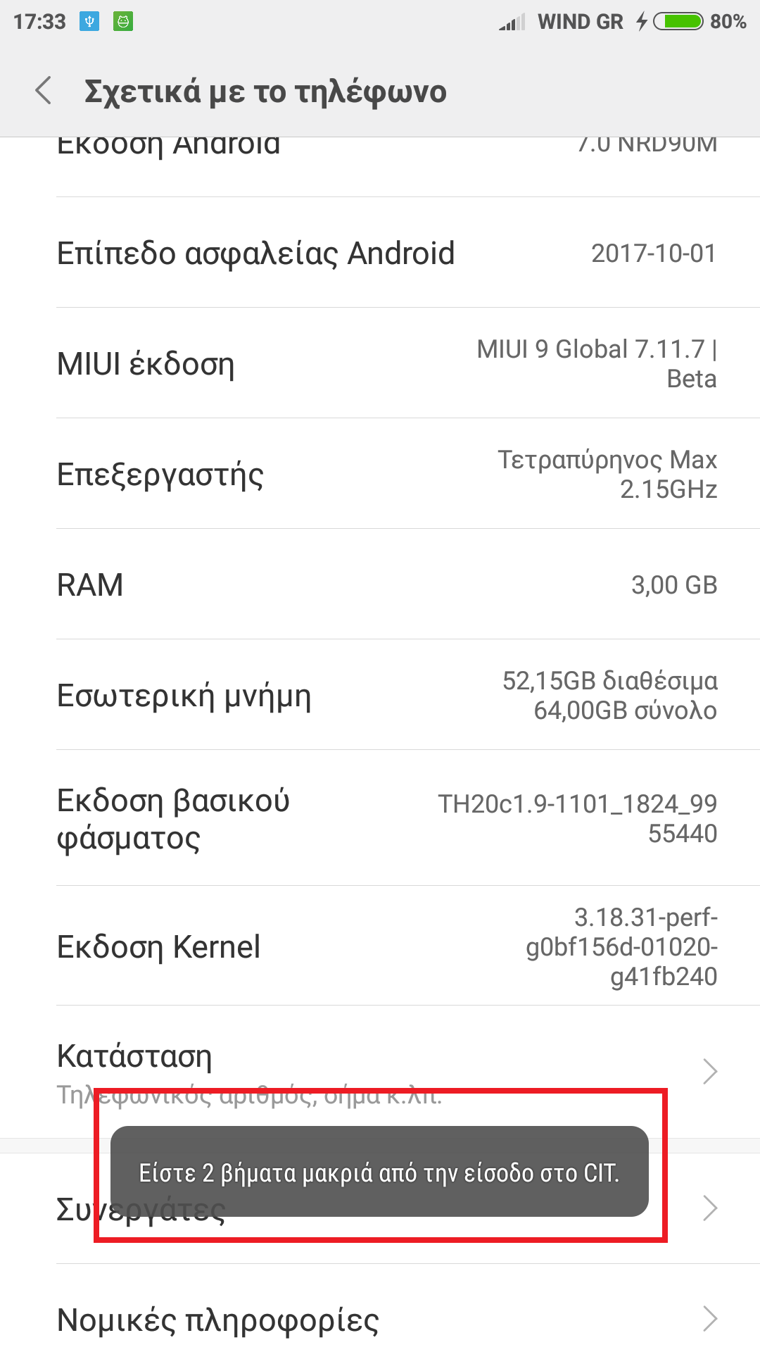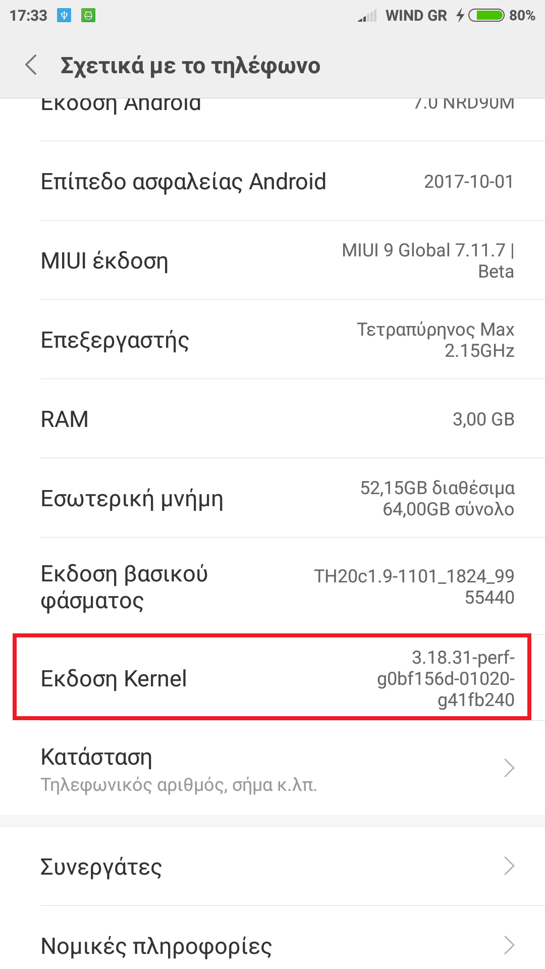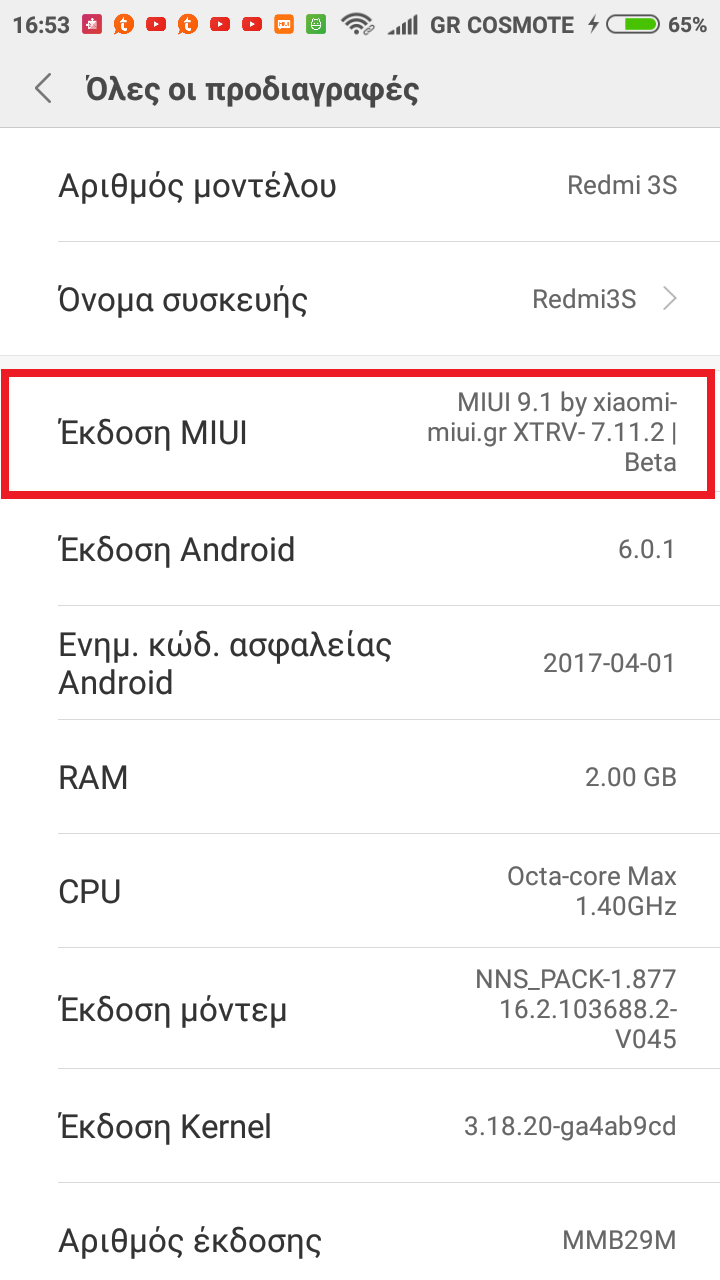 Πηγαίνετε Ρυθμίσεις - Η συσκευή μου - Όλες οι προδιαγραφές - Έκδοση kernel για China ή XTRV rom, Ρυθμίσεις - Σχετικά με το τηλέφωνο - Έκδοση kernel για Global rom.