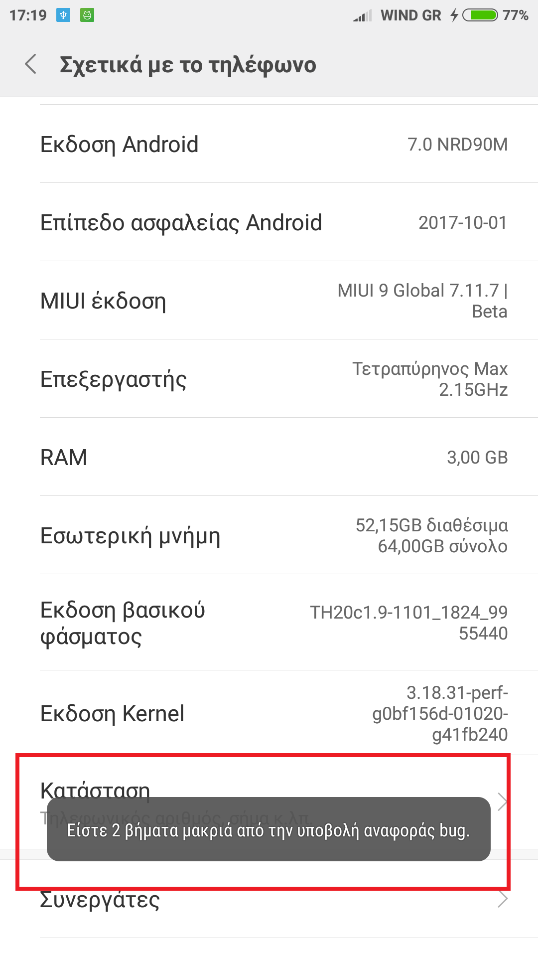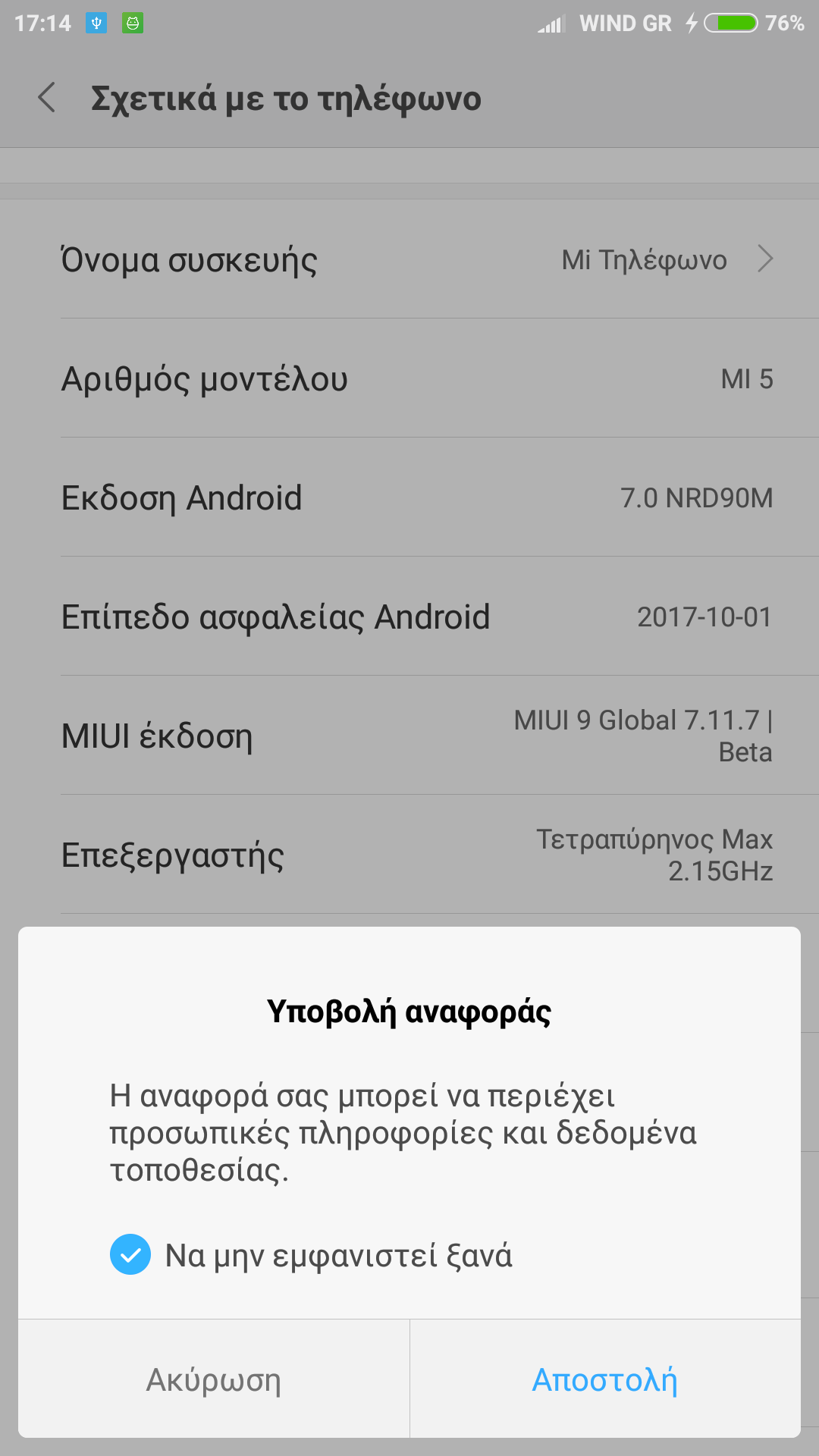 Πατήστε εκεί που γράφει CPU ή επεξεργαστής, ανάλογα ποια rom χρησιμοποιείται, 5 φορές για να δημιουργήσετε ένα αρχείο καταγραφής σφαλμάτων. Για China rom ή XTRV πηγαίνετε Ρυθμίσεις - Η συσκευή μου - Όλες οι προδιαγραφές μου - CPU για Global rom Ρυθμίσεις - Σχετικά με το τηλέφωνο - Επεξεργαστής.